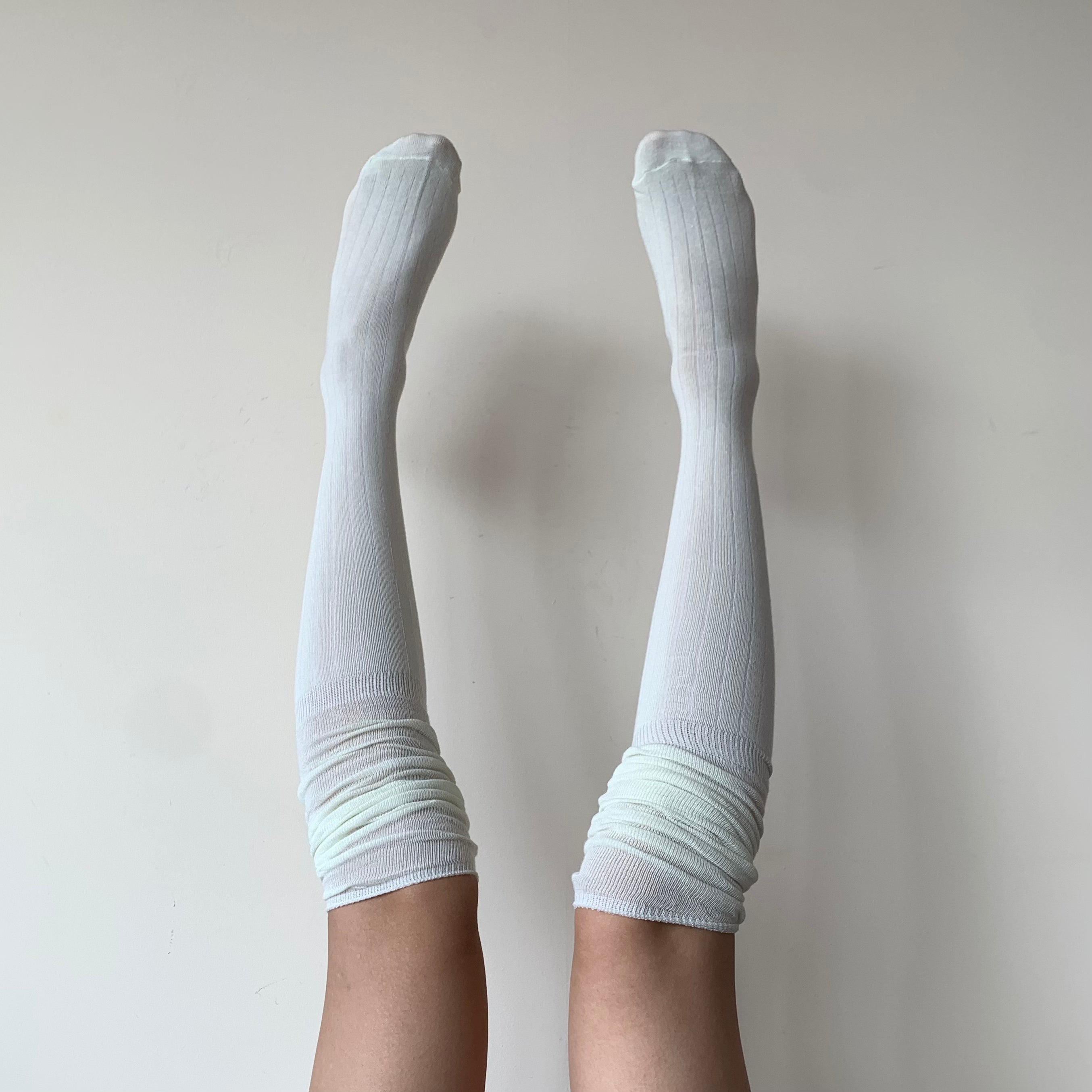 White Striped Knee High Socks with Slouchy Trim (64cm)